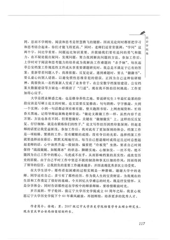 徐超(07级硕士)-《庆幸那些“小磨砺”—回忆辽宁大学生活有感》